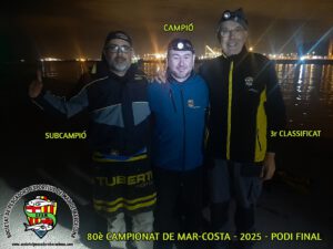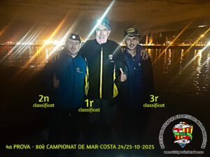 Al següent document hi podeu trobar la crònica, classificacions i fotografies corresponents al Campionat de Catalunya d’equips de pesca amb boia en categoria d’Alt Nivell, classificatori pel Campionat d’Espanya de l’especialitat, celebrat a l’Àrea de Pesca Controlada del Port de Barcelona el dissabte 20 de setembre del 2025