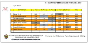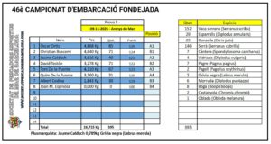El 5 d’abril era la data on s’havia de celebrar la darrera prova del Campionat, però enguany hem tingut un hivern i una primavera força remoguts a nivell de meteorologia amb molts temporals i més pluja de l’habitual, de manera que molts dels calendaris d’activitats a l’aire lliure van patir nombrosos canvis i el nostre, pescant i a més des d’embarcació no en va quedar al marge. Amb la càrrega de proves a diferents categories i també disciplines dels nostres esportistes, juntament amb la disponibilitat dels patrons ens han portat a traslladar fins al novembre la darrera i definitiva prova del campionat, on tot i ja tenir matemàticament un campió, la resta de les posicions del campionat encara són obertes, amb quatre esportistes disputant-se el dos graons del podi encara sense decidir.