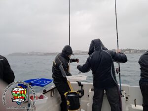 La pluja segueix, però mica en mica baixa la intensitat, de la mateixa manera que després d’algunes cànteres i més serrans i forcadelles, l’activitat ha minvat força i es decideix canviar el punt de fondeig, així que s’aixeca el “ferro” i es busca un altre punt amb més activitat i es torna a fondejar.
